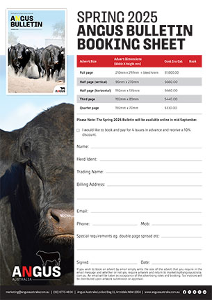 ADVERTISING BOOKINGS FOR THE SPRING EDITION OF THE ANGUS BULLETIN CLOSE WEDNESDAY 13 AUGUST 2025.
